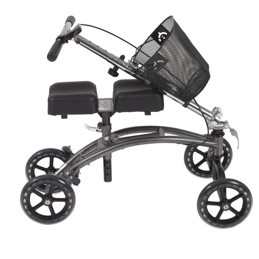 Equipped with 7.5″ casters, this knee walker glides smoothly indoors and outdoors, and the deluxe braking system provides secure and reliable stopping power. A removable front basket makes it easy to carry personal items, making daily tasks more convenient during recovery.