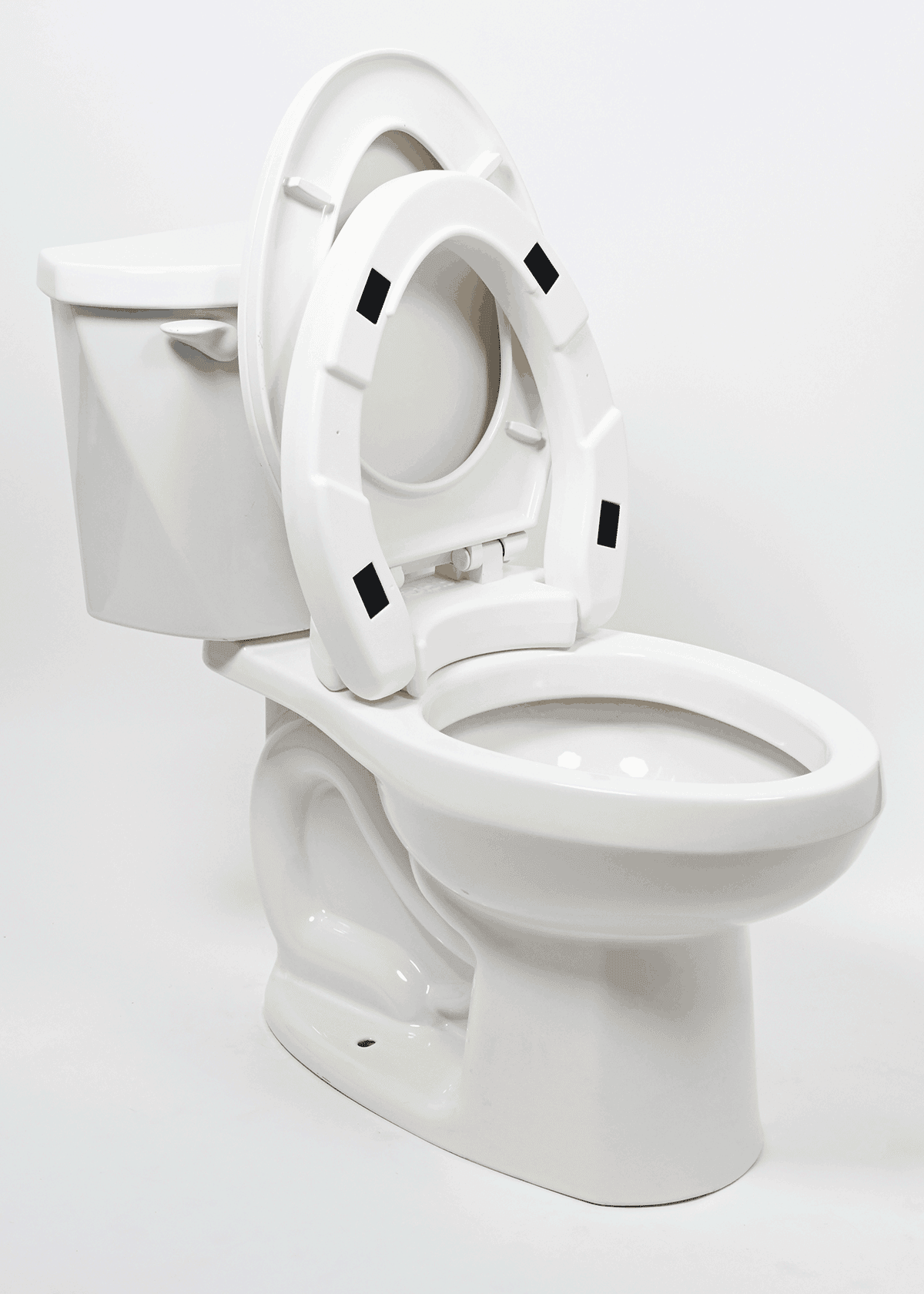 A 2″ hinged raised toilet seat that adds comfort and makes sitting and standing easier. Hinged design allows for simple cleaning and everyday convenience.