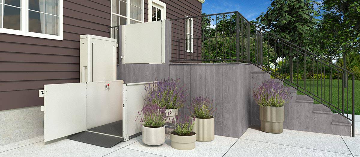 Gain easy access to raised entries, decks, or different levels in your home with a Bruno residential vertical platform lift (VPL). Bruno wheelchair lifts are available up to 14 ft/4267 mm and provide a cost-effective access solution to your home. Enjoy a smooth quiet ride, easy operation and maintenance-free reliability. Bruno vertical platform lifts, also called porch lifts, can be installed indoors or outdoors, are code compliant and offer American-built quality.