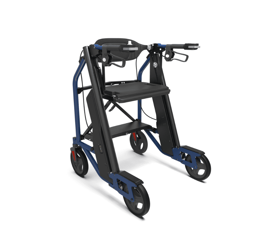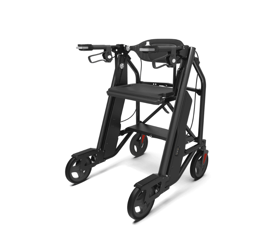 Unlike traditional rollator walkers, the Raymex Lift includes a rotating, elevating seat, adjustable handles, built-in safety locks, and a stable frame that users can safely stand or walk inside. The unit folds to just 12.5 inches wide, making it easy to use at home, in clinics, long-term care, assisted living, and community settings.