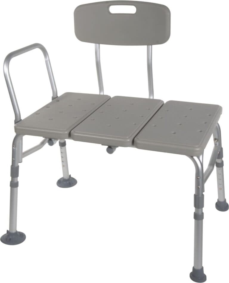 The Transfer Bench with Adjustable Backrest by Drive Medical accommodates any bathroom with its many customization options.